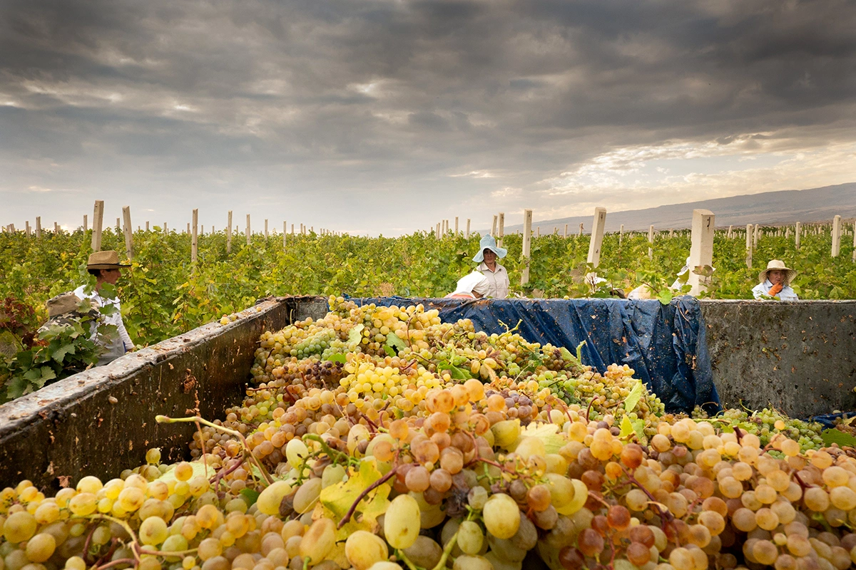 «План валового сбора пока на уровне 85–90 тыс. т. В прошлом году было почти 109 тыс. т. Сейчас собирают белые сорта «кристалл» и «платовский». Виноград убирают с помощью высокотехнологичных комбайнов, которые позволяют собирать виноград быстро, избегая порчи ягоды и лозы», — прокомментировали в пресс-службе компании.